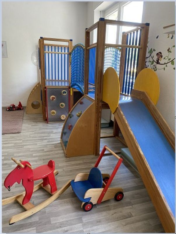 Unsere 80 qm großen Räumlichkeiten umfassen ein Spielzimmer, ein Schlafzimmer und einen Ess- und Bastelraum. Das Spielzimmer begeistert mit kleinen Rutschen, einem großen Kletterpodest und natürlich vielfältigem Spielzeug - perfekt für kreativen Spiel- und Kletterspaß.