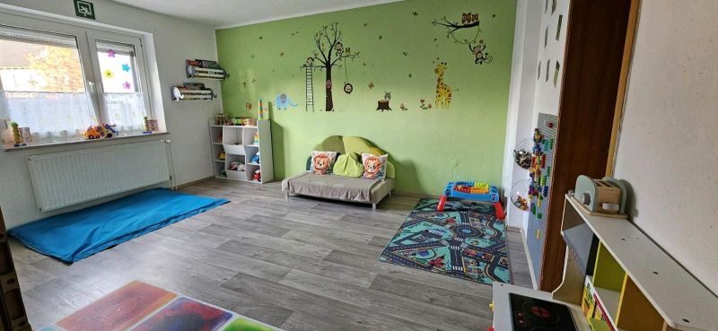 Die Küche steht zum Kochen und Backen zur Verfügung. Im Spielzimmer finden der tägliche Morgenkreis, Singkreis und das freie Spielen statt. Hier befindet sich auch das Spielzeug, Bauklötze, Duplo, Puzzle, Steckspiele Autos uvm.