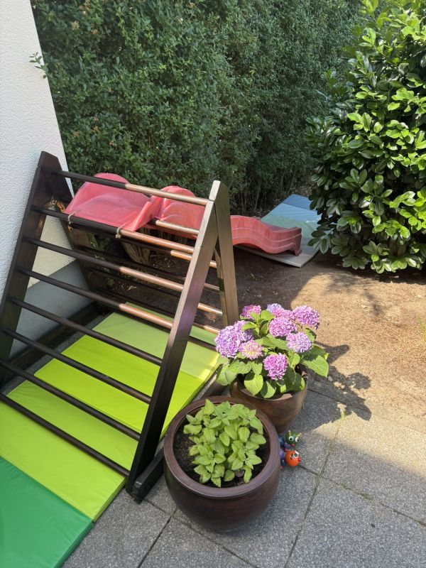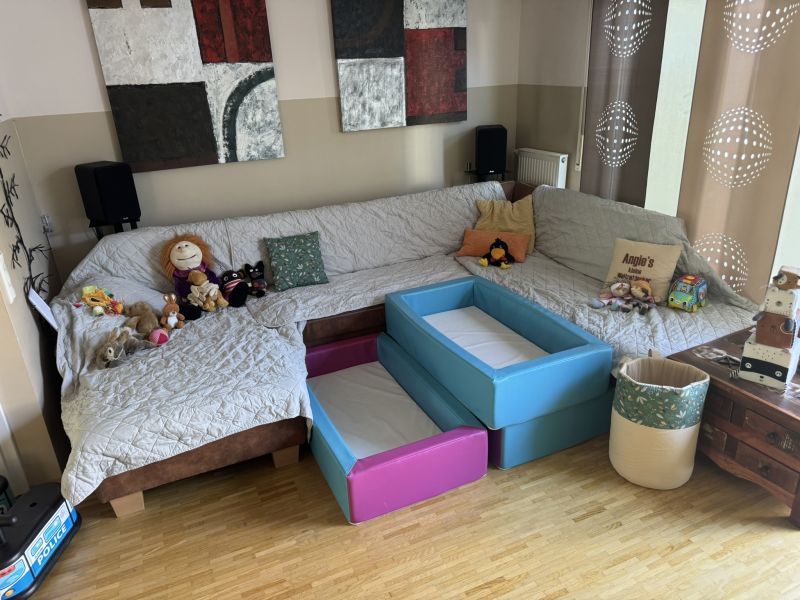 My name is Angela Marie Stenmans Cash (born 1986) and I live with my patchwork family of 5 in Essen West. Here I look after 5 day care children in my own premises in a detached house with a garden. Flexible hours are possible from 5:00 to 19:00. I am a childminder with heart and soul. Every child has its own nature and its own needs. What I offer is individual - also inclusive - care and support in a small group in good and close cooperation with the parents. With me, individual arrangements are possible in consultation with mom and/or dad. This applies to drop-off and pick-up times as well as nap times. My concept includes almost 100% organic food and very healthy cuisine and outdoor activities. We spend a lot of time outside in the fresh air. Whether in our own garden or on the playgrounds in the immediate child-friendly surroundings. My annual training usually goes beyond the minimum required to ensure the best possible care for the children. I am also a nutritionist and have an additional specialist qualification in vegan nutrition, so that I can also offer a purely plant-based nutritional concept, taking all nutrients into account, if the parents wish.